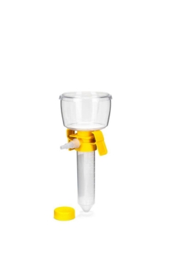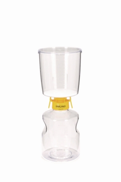Kompletteinheiten mit Auffanggefäß für die Sterilfiltration von wässrigen Lösungen und Medien, insbesondere im Bereich Zellkultur. Einfache und sichere Handhabung. Die eingebaute Membran aus Polyethersulfon (PES) garantiert extrem gute Durchflusszeiten und niedrige Proteinbindung und ist daher ideal für die Filtration von proteinhaltigen Lösungen. Das Auffanggefäß wird mit Schlauchadapter und Verschlussdeckel geliefert. |