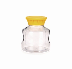 Flaschen aus Polystyrol zum Einmalgebrauch für die Aufbewahrung von Gewebekulturmedien, Seren und Puffer.